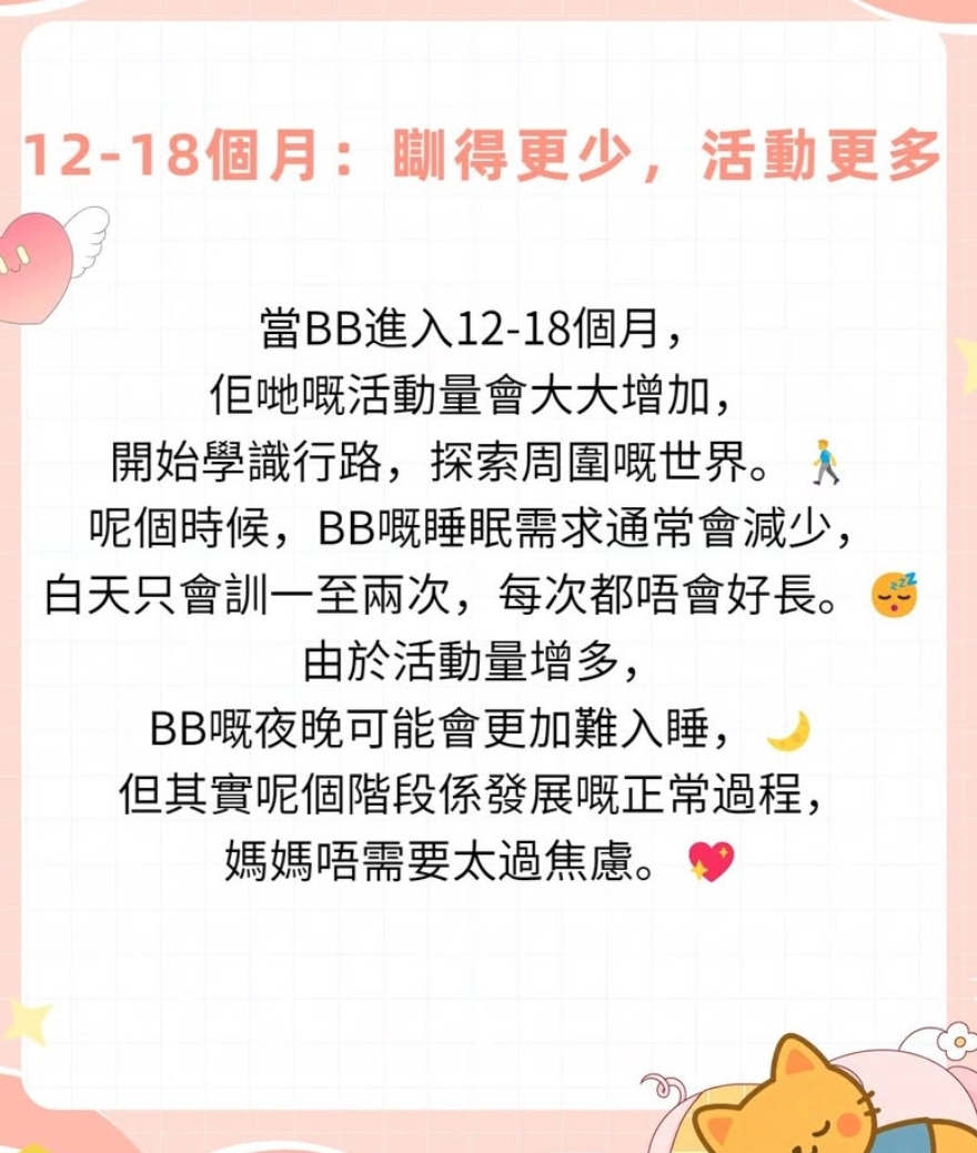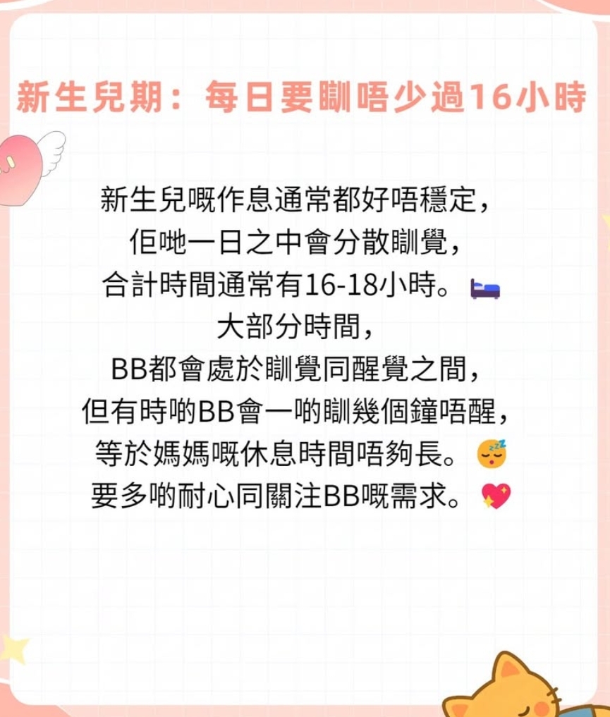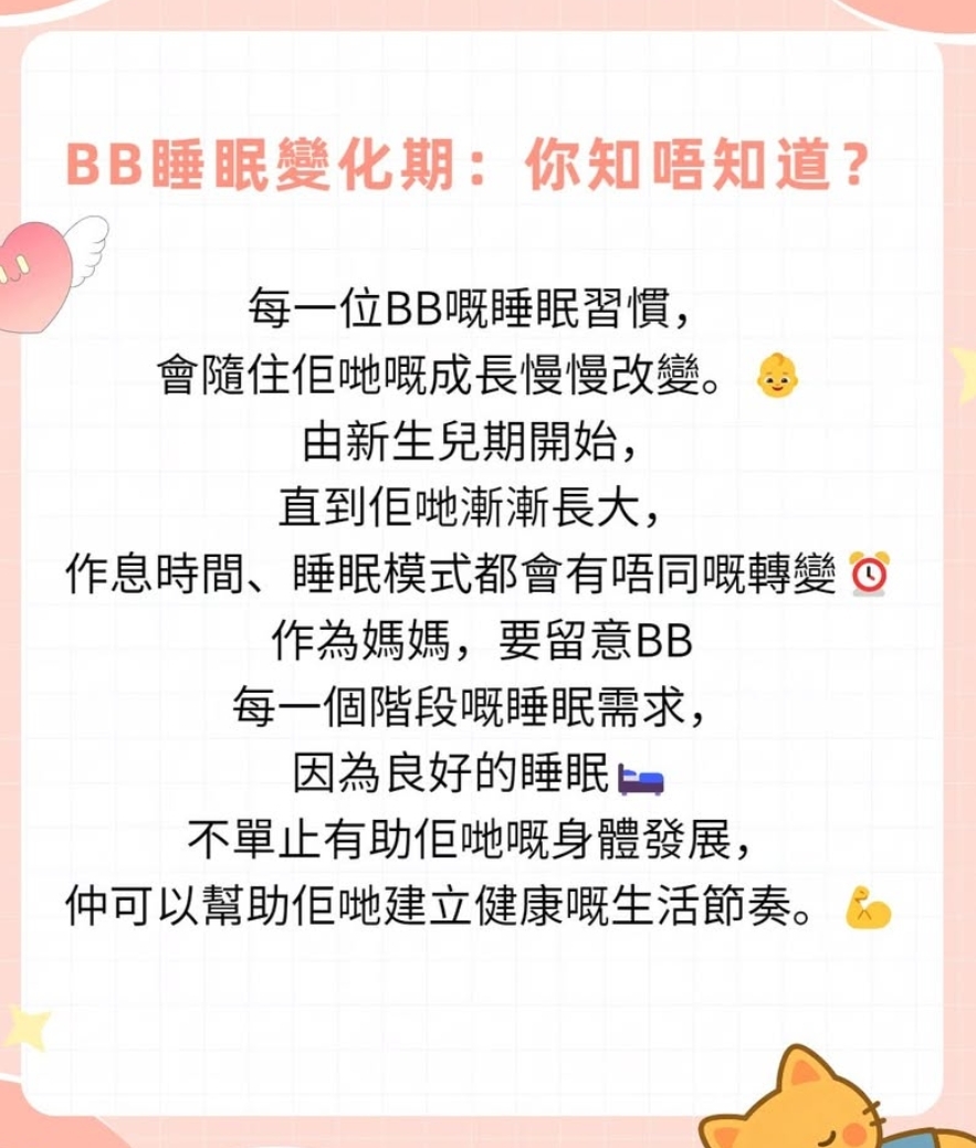 BB唔同階段嘅睡眠需求會改變。 🔄
