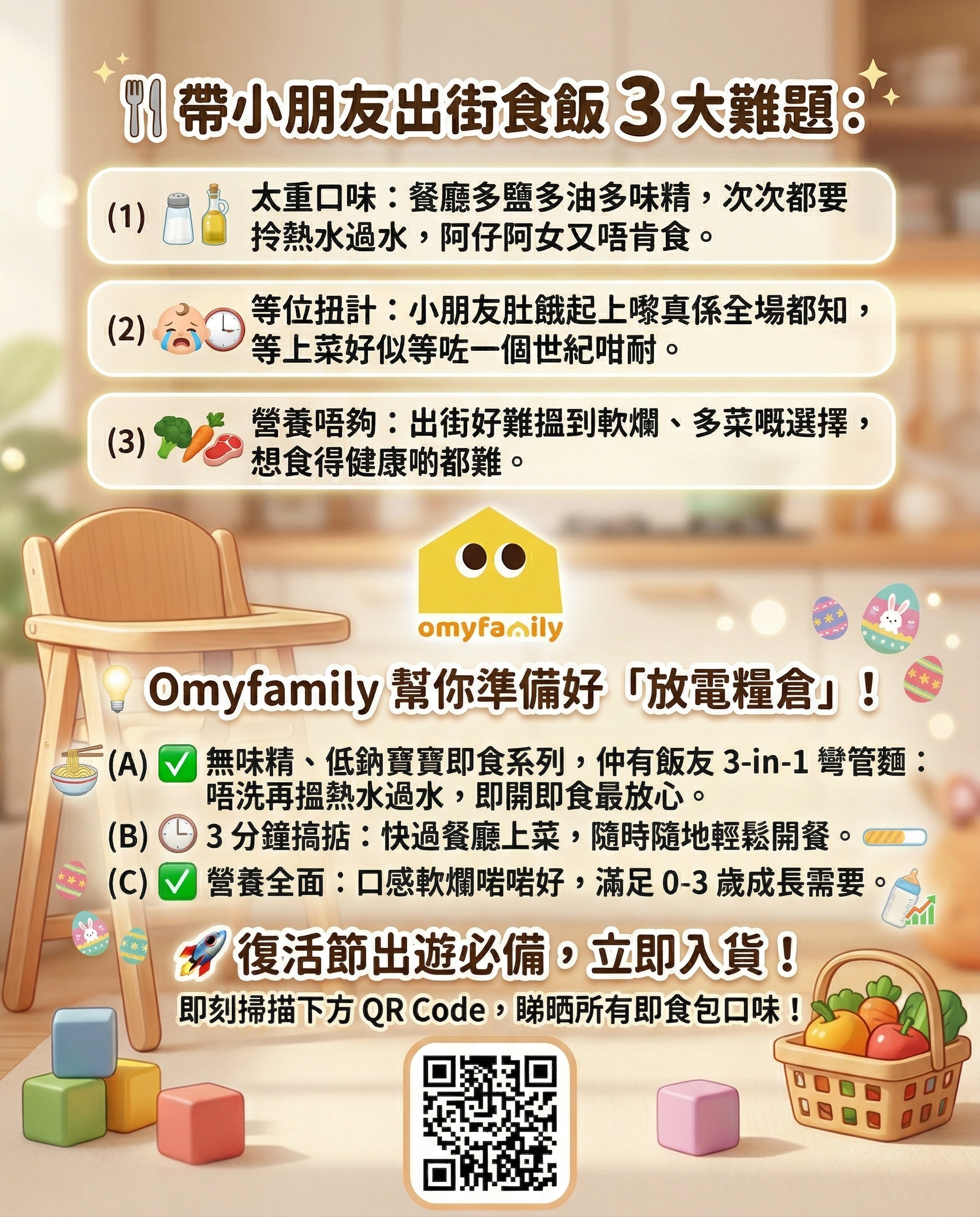 帶小朋友出街食飯,次次都要過水、等上菜等半個鐘? 我準備咗份放電糧倉畀大家,我哋官網有好多款 【寶寶即食系列】 同 【飯友彎管麵】: ✅ 無味精、低鈉:即開即食,大人細路都安心。 ✅ 3 分鐘搞掂:快過等位,隨時隨地輕鬆開餐。