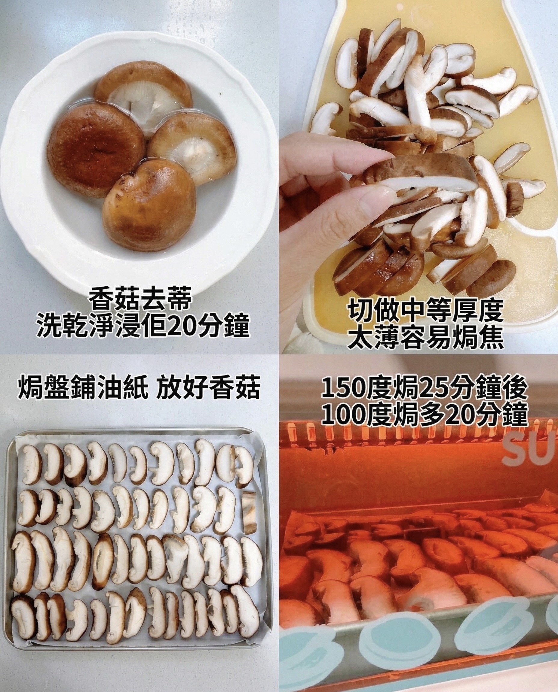 4️⃣ 低溫風乾: 先用 150度焗 25 分鐘(焗走水份),再轉 100度焗 20 分鐘。