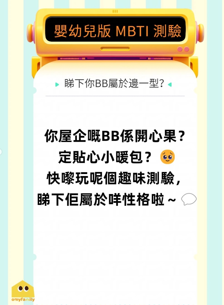 #BB測驗 #育兒技巧 #BB性格 #BB生活 #親子關係 #父母生活 #香港媽媽 #媽媽育兒 #BB成長 #寶寶 #BB版MBTI #育兒日常 #BB活動 #BB成長日記 #媽媽生活 #育兒故事 #親子互動 #育兒知識 #BB情感 #BB心聲 #香港育兒 #Omyfamily照顧BB每一天