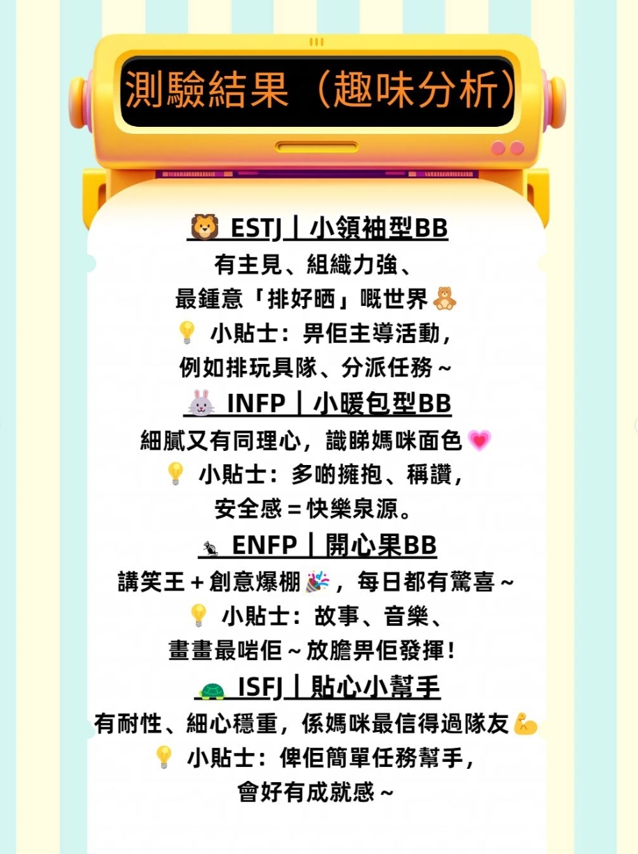 用BB版MBTI測驗,睇下你BB嘅性格到底係點!🥰