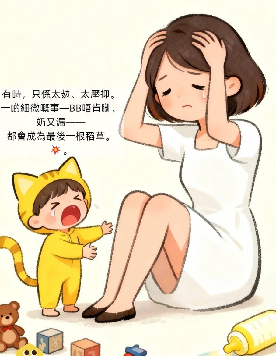 有冇試過嗰種感覺——明明好愛BB,但有時真係忍唔住爆?😢 半夜醒幾次餵奶、日頭又要煮飯、洗衫、收玩具、哄訓… 成日都「on call」模式,連坐低飲啖水都奢侈。