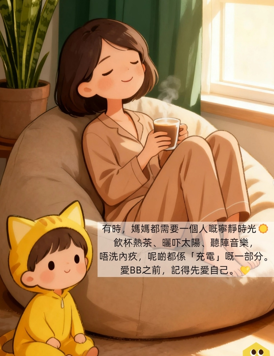 記住,情緒唔代表你唔愛BB。反而,識得承認自己「頂唔順」,已經係勇敢嘅第一步。試下比自己放鬆5分鐘,飲杯茶、深呼吸、出去曬吓太陽☀️ 你值得被安慰、被理解、被照顧💛