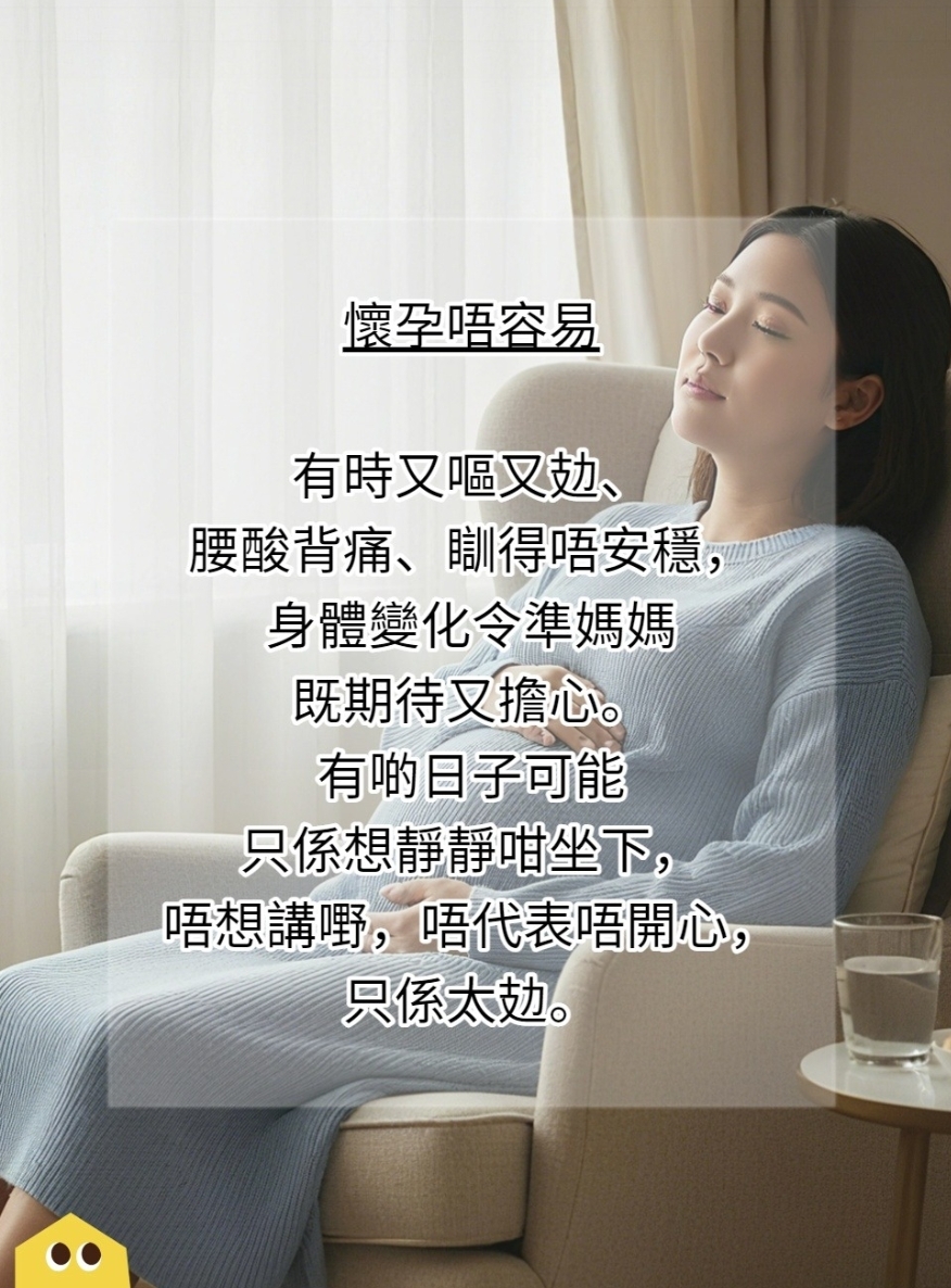 成為媽媽之前,好多人都話:「要好好休息、唔好太大壓力。」但當真係懷孕之後,先發現要兼顧太多嘢——身體變化、情緒起伏、仲要擔心BB健唔健康。😣