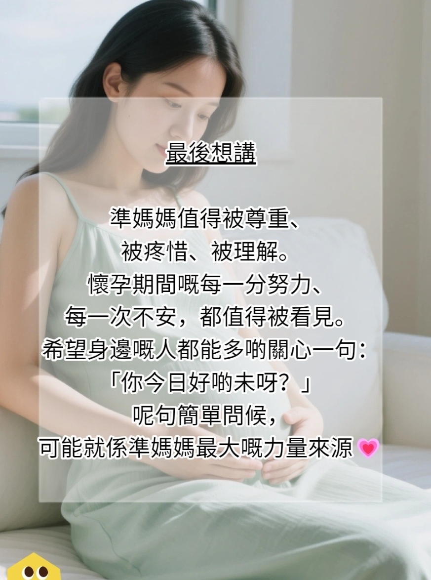 無論係老公、家人定朋友,其實一句貼心說話、一碗熱湯、一個擁抱,都可以俾準媽媽莫大嘅力量。🤰