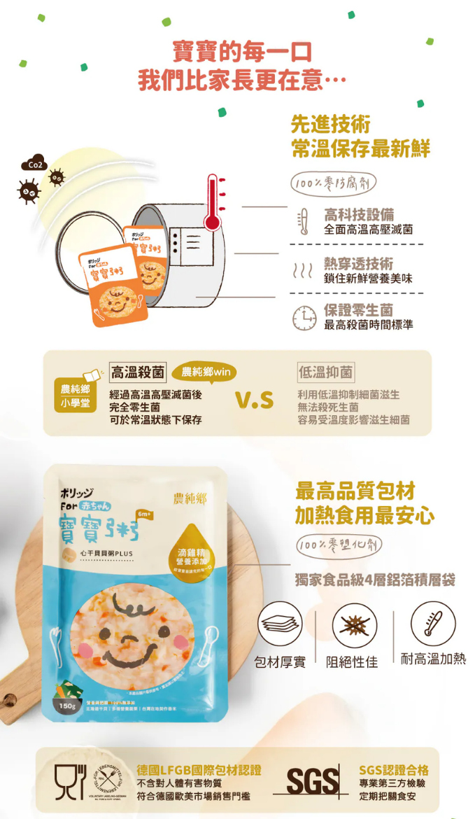 農純鄉寶寶粥最高規格的品質、品管檢驗,從原料來源到製作過程,是市面上唯一擁有最多認證的食品廠