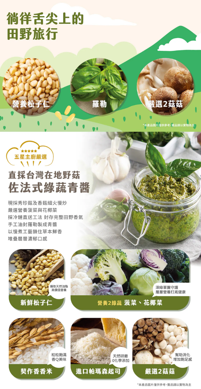 |青醬松子:新鮮松子X台灣在地野菇X深綠鮮蔬,給寶寶滿滿蔬食營養