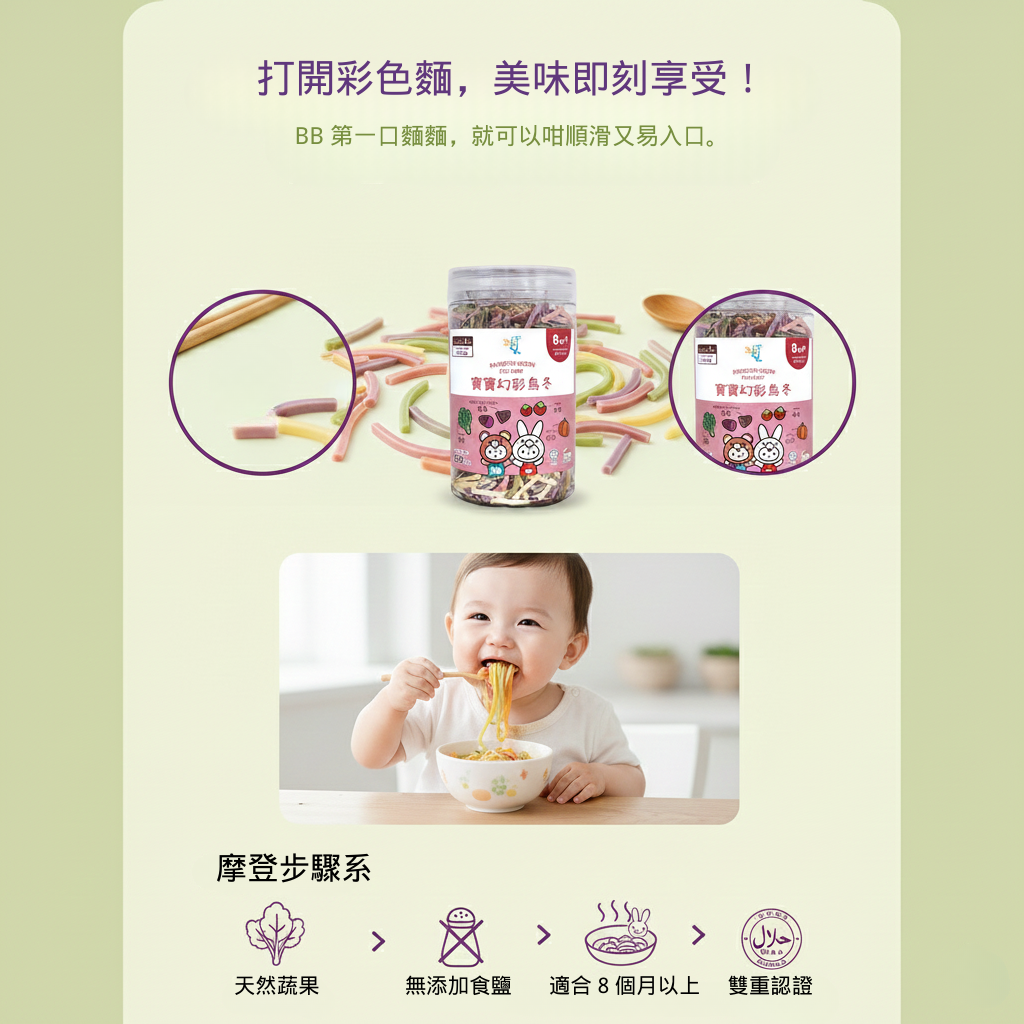 寶寶幻彩烏冬 (南瓜,蕃茄,紫薯,菠菜) 250克 (8個月或以上)
