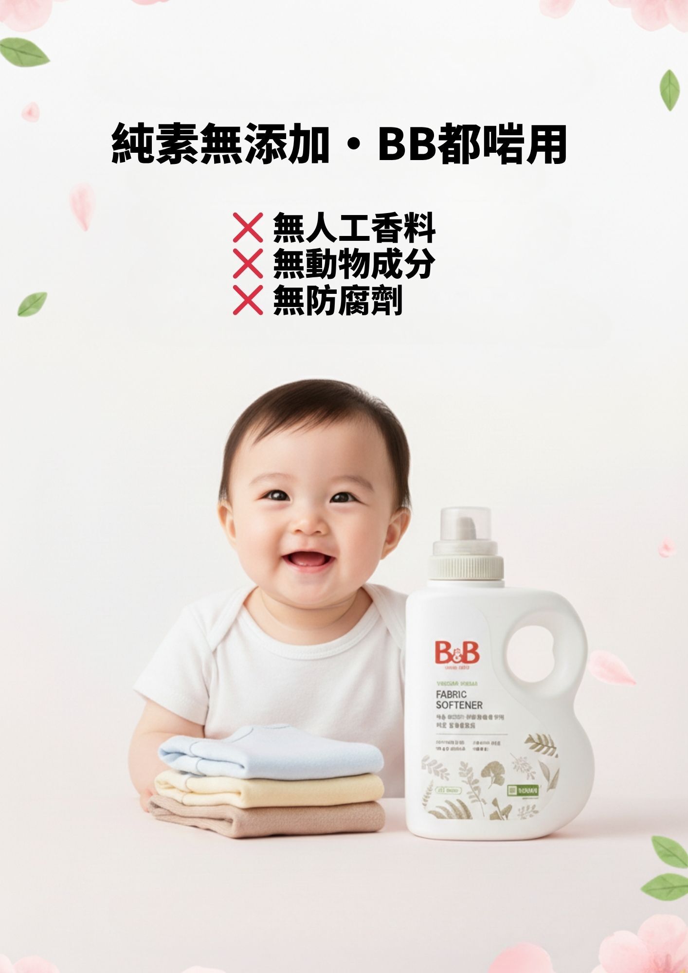 • 名稱:B&B 嬰幼兒純素天然衣物柔順劑