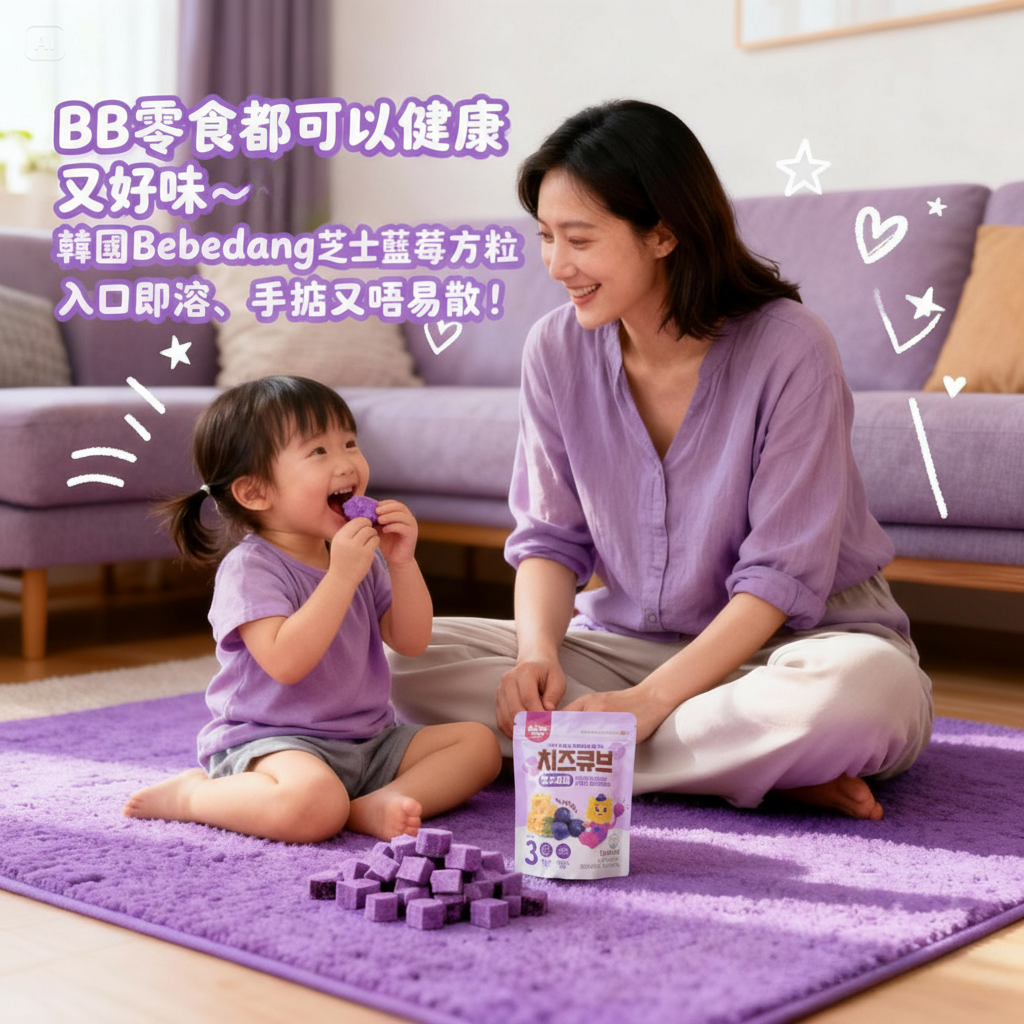 ✅ 解決方案:BeBeDang 藍莓芝士球經冷凍乾燥製成,入口即溶、微甜不膩;用天然藍莓果肉增添香氣,小手易拎、唔怕碎、出街食都方便!