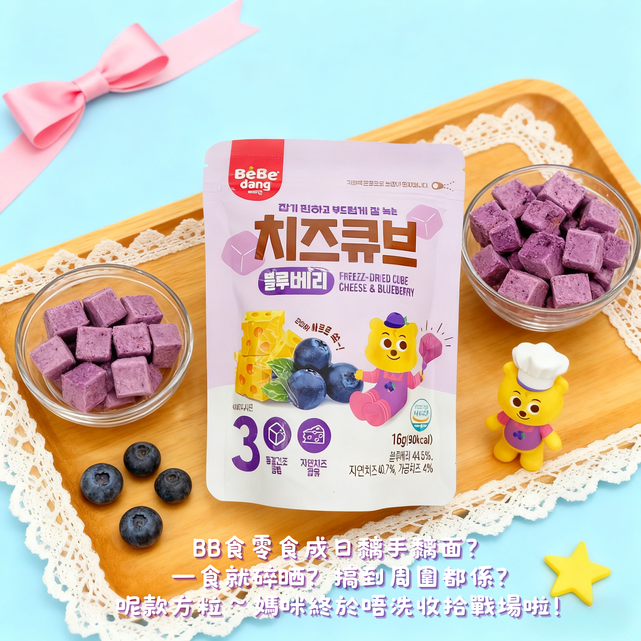 • 關鍵字:芝士球、藍莓口味、入口即溶、冷凍乾燥、嬰幼兒小食、12個月副食品、韓國製