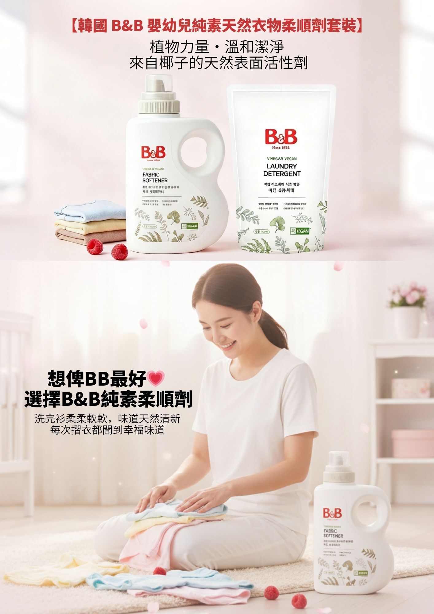 • 名稱:B&B 嬰幼兒純素天然衣物柔順劑套裝