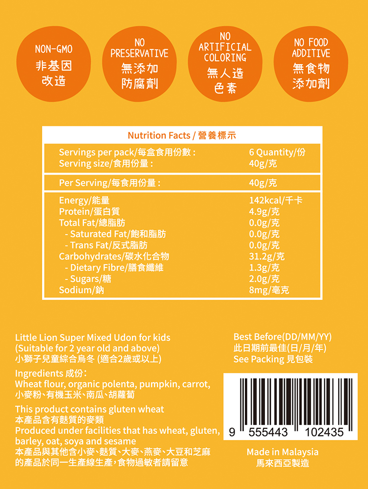 • 特點:非基因改造/無防腐劑/無人工色素/Halal + ISO 認證