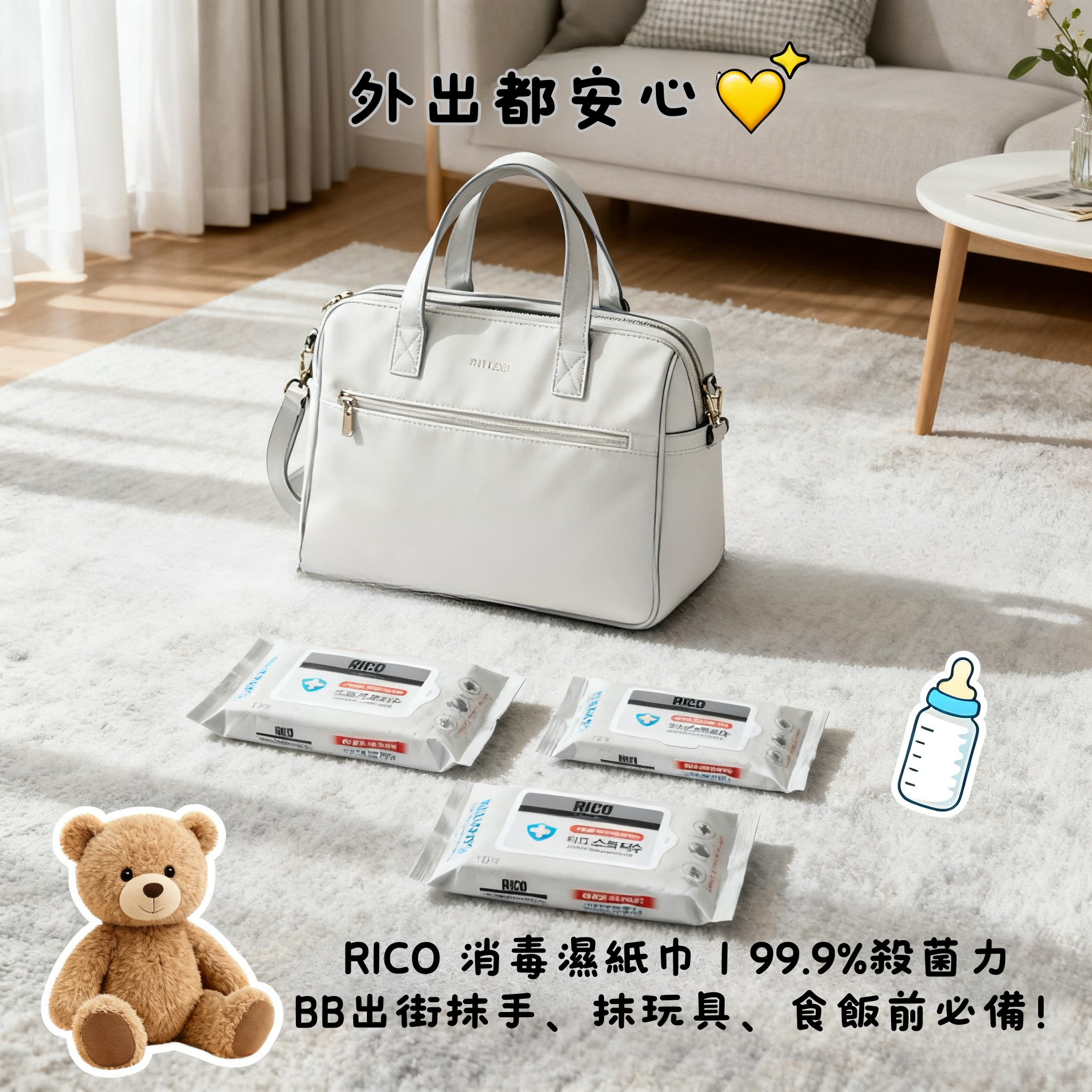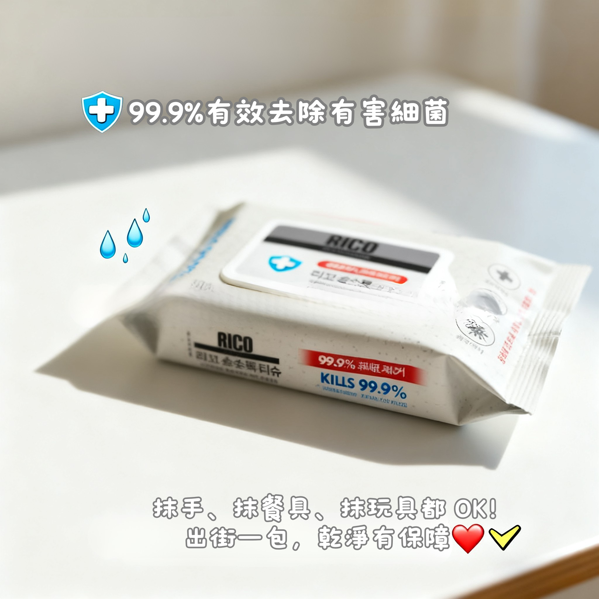 • 名稱:Rico 99.9% 消毒濕紙巾 10片