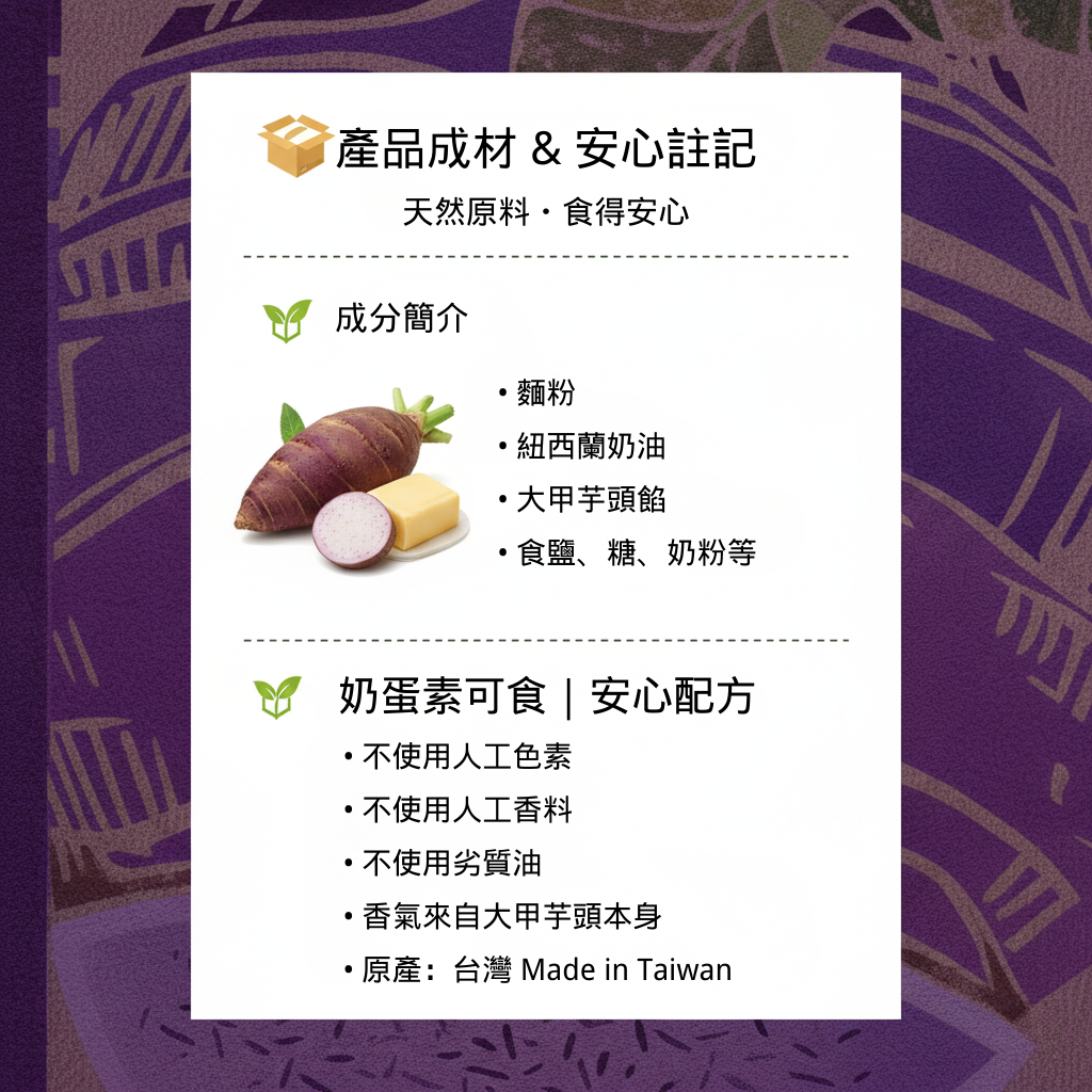 ★內餡使用大甲芋頭製作濃郁滑順芋泥夾心
