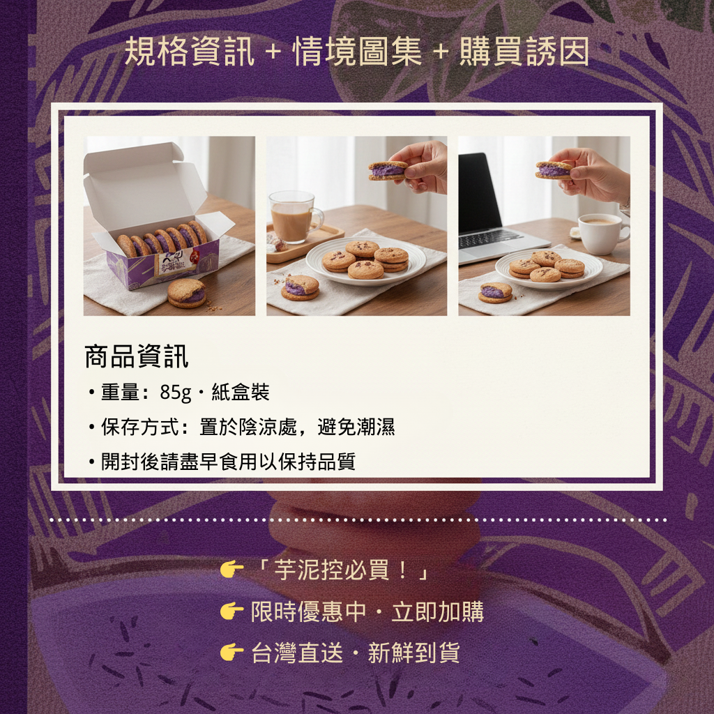 ★外酥內綿的芋泥夾心曲奇,甜度適中