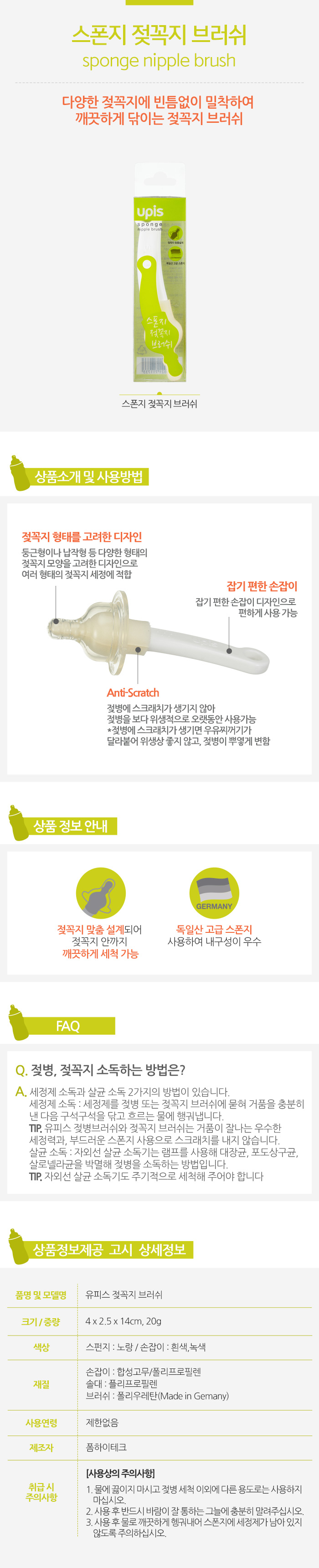 Directions for use: Put the cleanser on the high density sponge, dampen lightly with water and remove contaminants by wiping the sponge with pressure to a teats or pacifier.