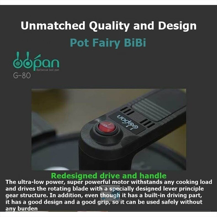 * Redesigned drive and handle The ultra-low power, super powerful motor withstands any cooking load and drives the rotating blade with a specially designed lever principle gear structure.