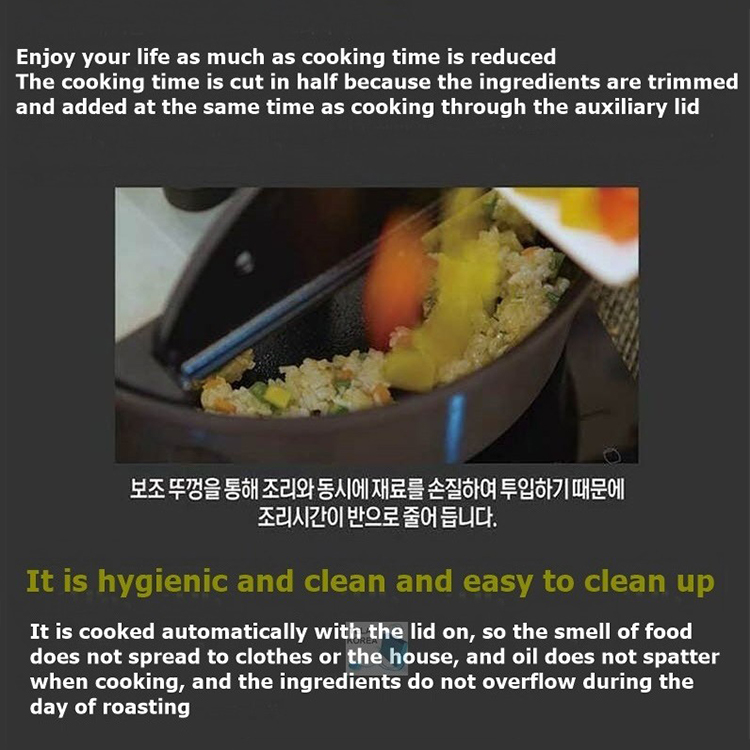 (You can enjoy pork belly, bulgogi, and other grilled dishes without worrying about the smell of your clothes or home without worrying about oil splashing. It also cooks with a lid, making the kitchen clean and cooking much easier.)