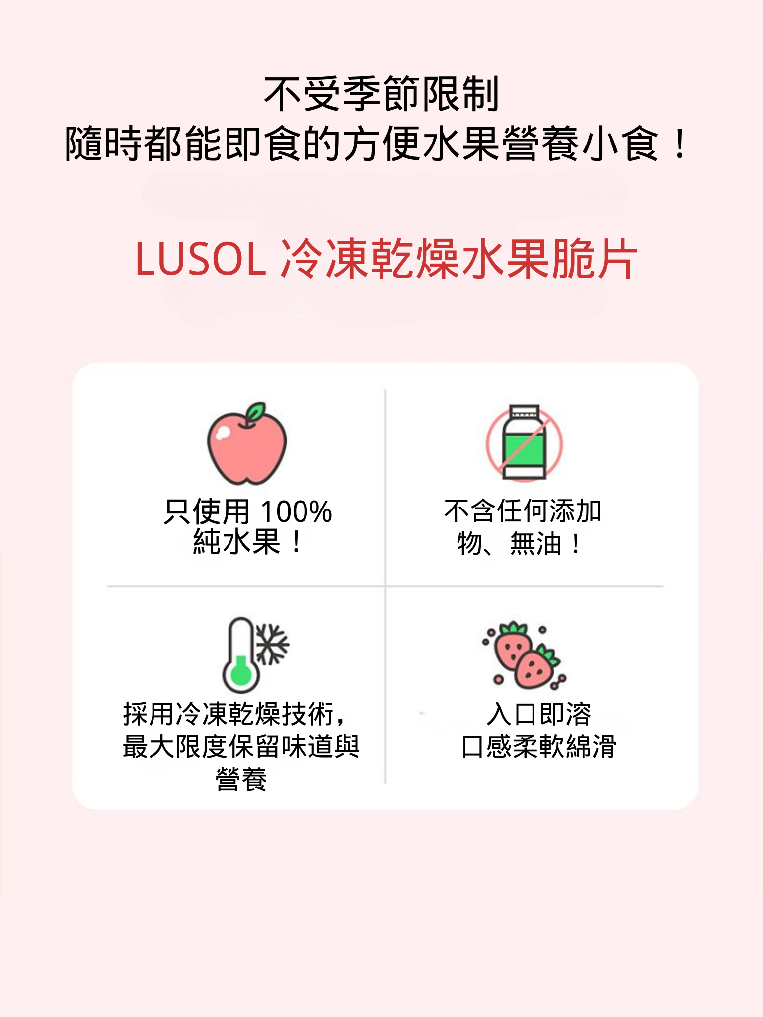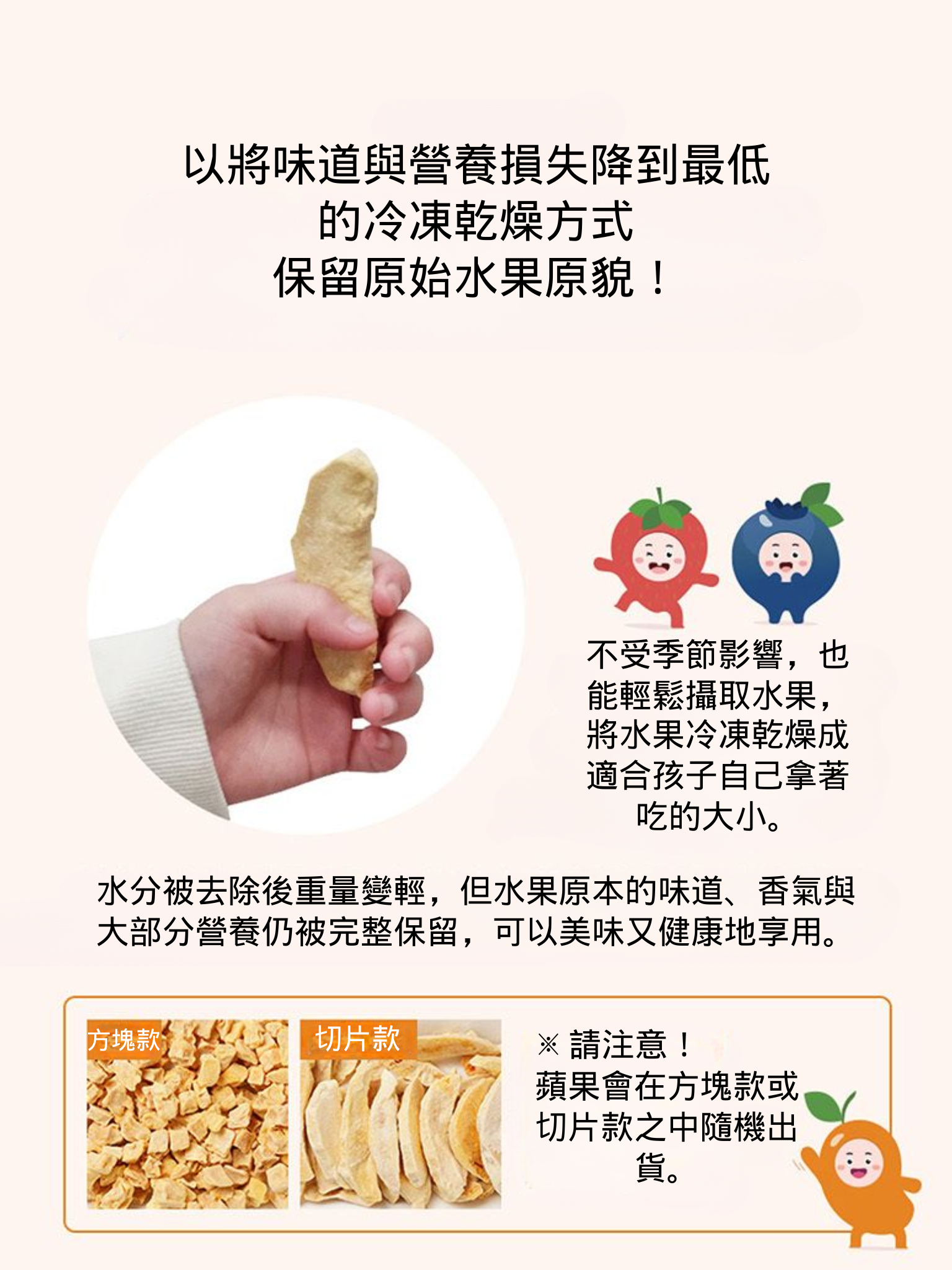 -使用冷凍+烘乾技術,完整保存了水果的原味及營養。