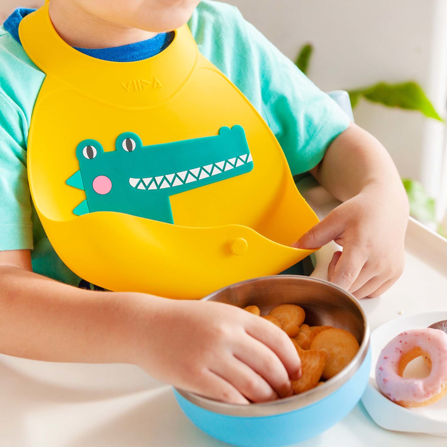 用餐食物不漏接!大口袋設計,放手讓孩子自由自在的吃飯也不怕弄髒衣服!